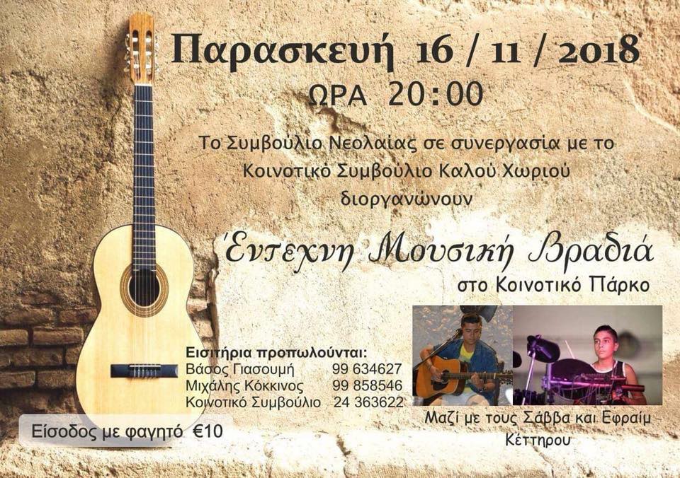 Έντεχνη Μουσική Βραδιά (Καλό Χωριό Λάρνακας (16/11/2018)