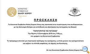 Συγκέντρωση για εκπαίδευση και αξιολόγηση της λειτουργίας του θεσμού «ΠΑΡΑΤΗΡΗΤΗΣ ΤΗΣ ΓΕΙΤΟΝΙΑΣ» 12/9/2019
