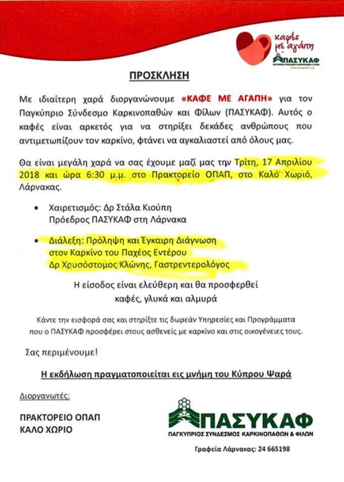 ΚΑΦΕ ΜΕ ΑΓΑΠΗ 17 Απριλίου 2018