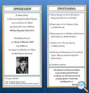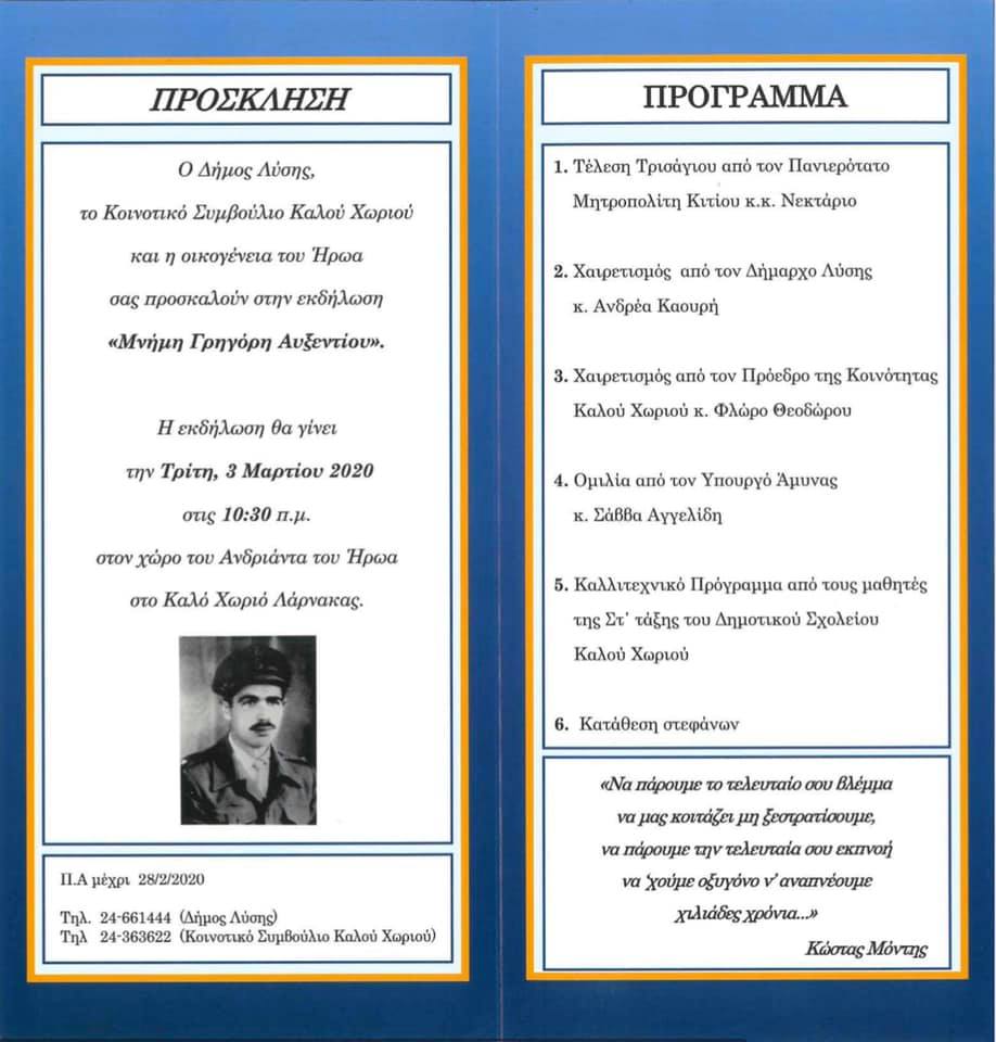Εκδήλωση Μνήμης Γρηγόρη Αυξεντίου 3/3/2020
